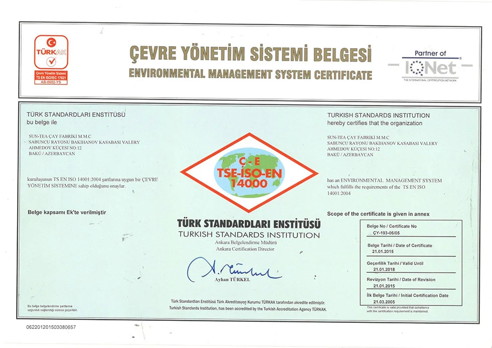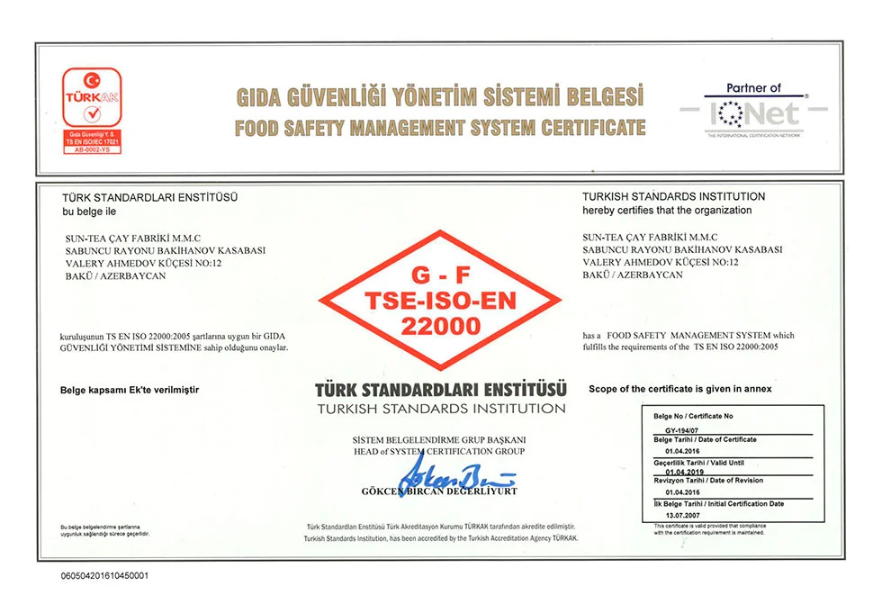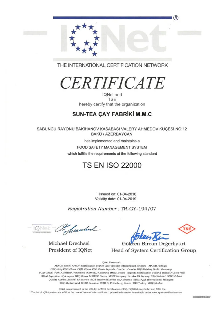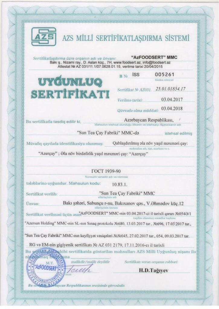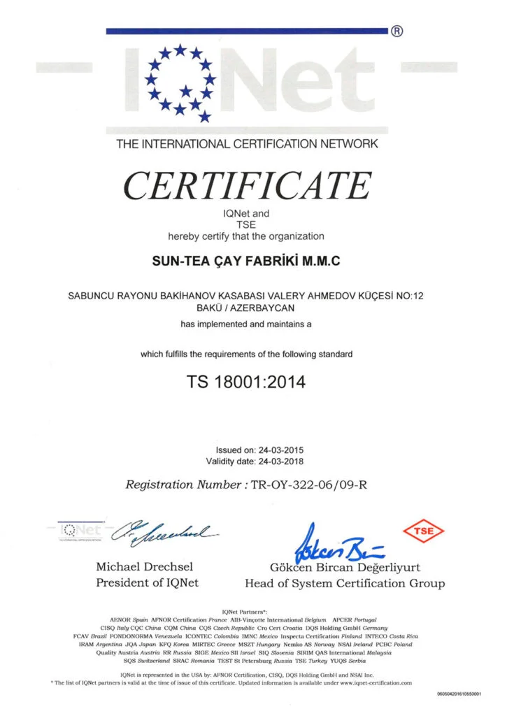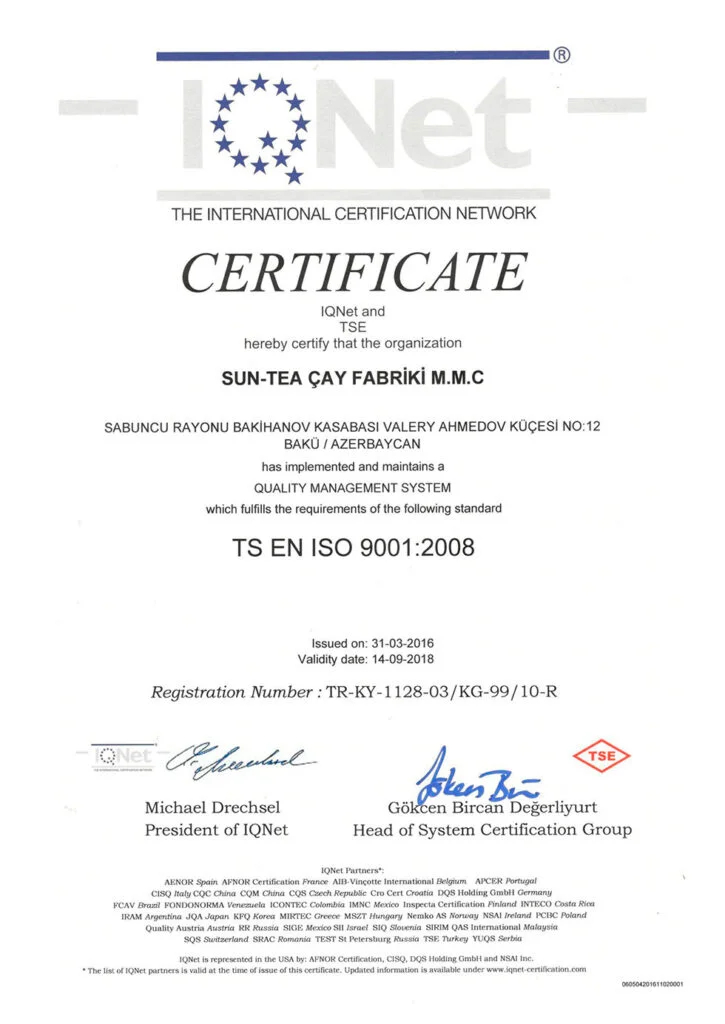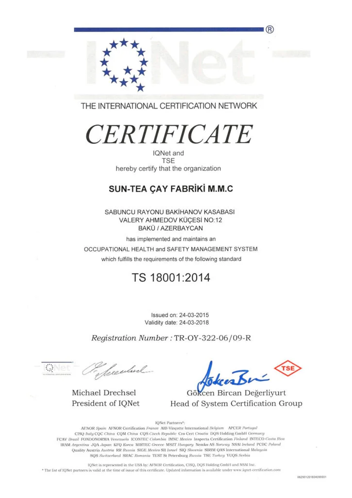 اذرشاي حاصل على اكثر من 21 شهادة جودة عالمية ومحلية.