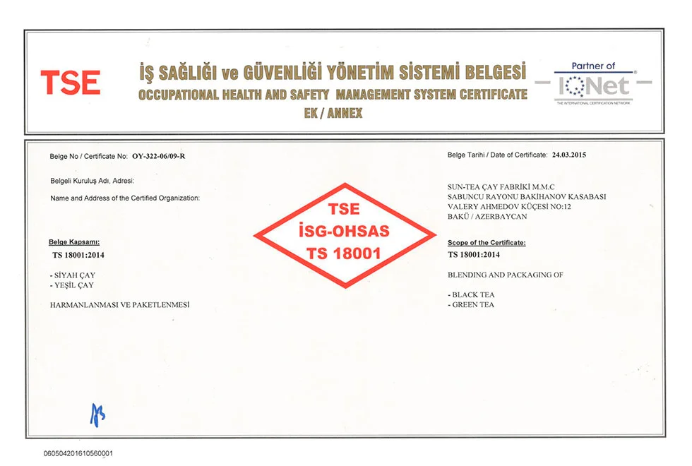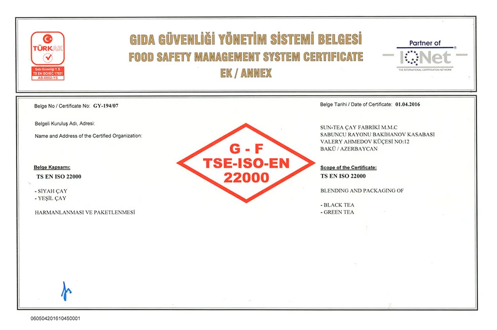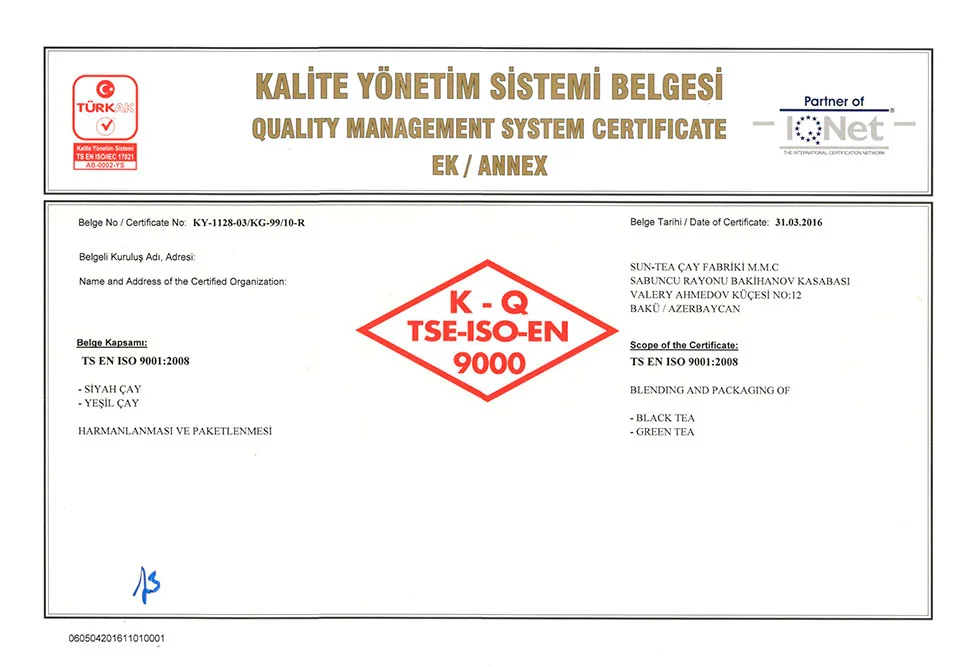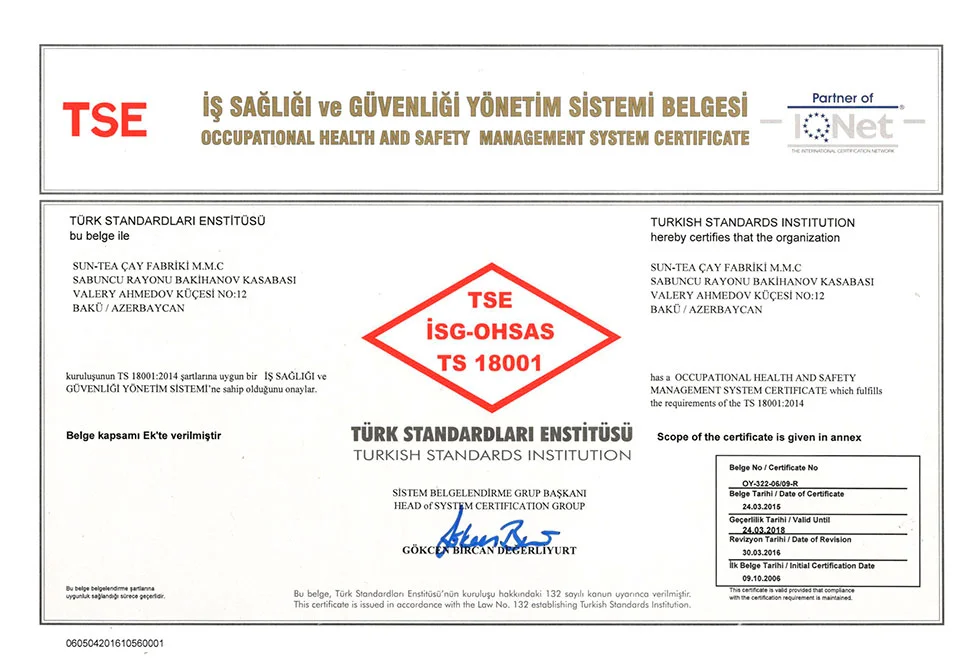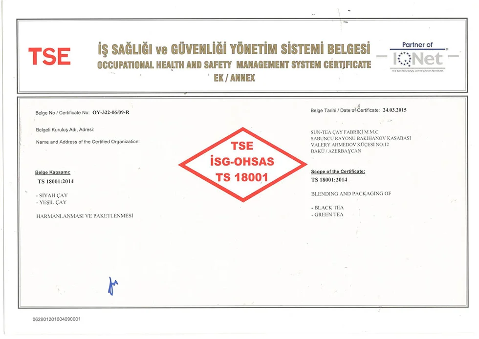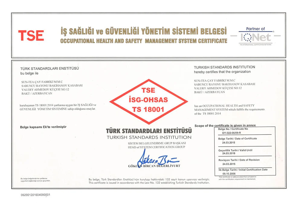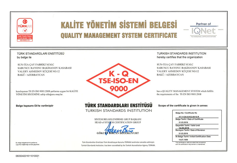 اذرشاي حاصل على اكثر من 21 شهادة جودة عالمية ومحلية.